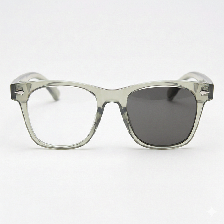 - Lenses: Grey Photochromic CR-39 lenses stay clear indoors and darken outdoors in sunlight, with a neutral grey activated tint. UV-activated for changing light.