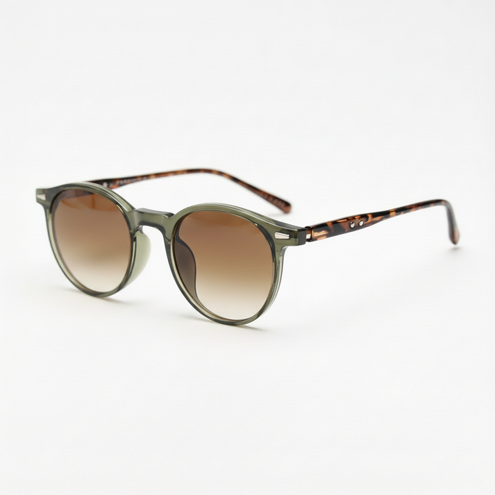 - Green round glasses: translucent olive tone adds character while staying clean and wearable.